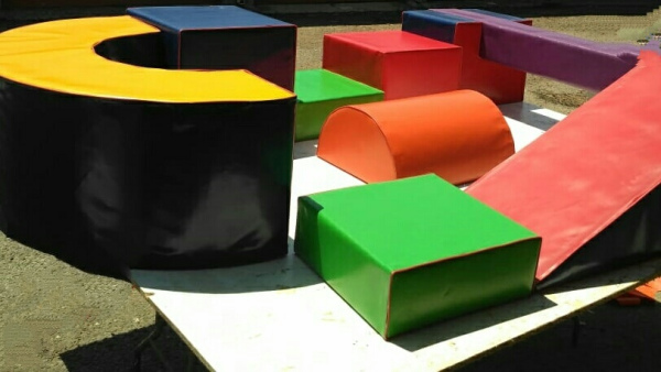 1 Half wheel,4 block stair set,1 half round,3 pc balance beam and 1 big wedge.